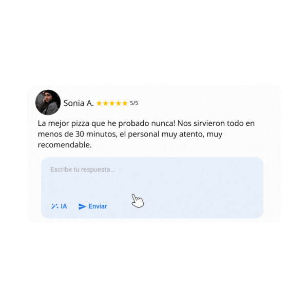 Nuestra inteligencia artificial analiza cada reseña y genera respuestas personalizadas y naturales, adaptadas al tono de tu marca.